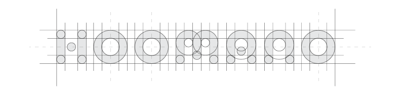 The font built with circles to match the rounded shapes of the brand and to harmonize with the mark which also buid with circles. The proportions of the font counted in the way to be pixel perfect after decreasing 2x and 4x from original size
